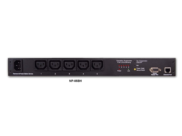 netBooter™NP-05B /NP-05BH PDU 提供智能远程电源管理,通过TCP/IP网络或直接串行连接进行管理,5个插座输出并能独立控制,1U的机架,所有接口设计在同一面,方便管理。