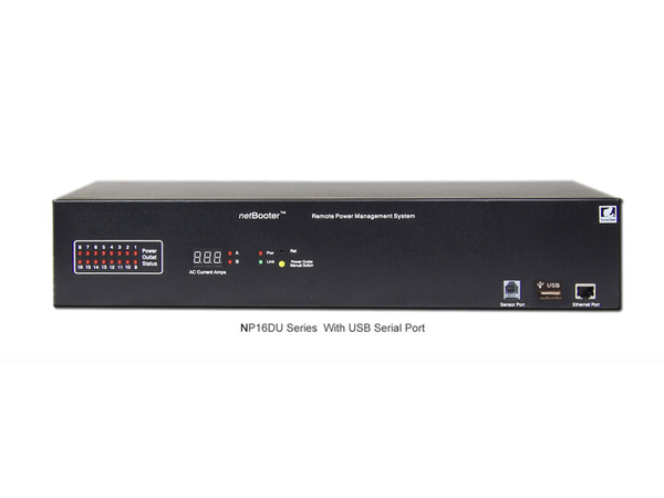 netBooter™NP-1601DU /NP-1601DUH PDU 提供智能远程电源管理,通过TCP/IP网络或直接串行连接进行管理,16个插座输出并能独立控制,具备电流检测功能,实时监控设备总电流大小,并可外接温度探头,了解设备运行环境温度, 采用标准2U机架,。